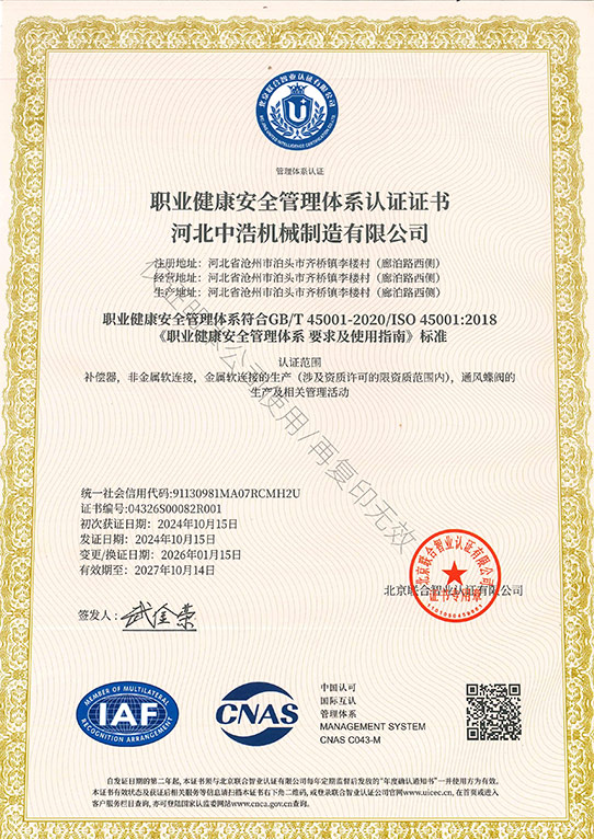 职业健康安全管理体系认证证书 中文