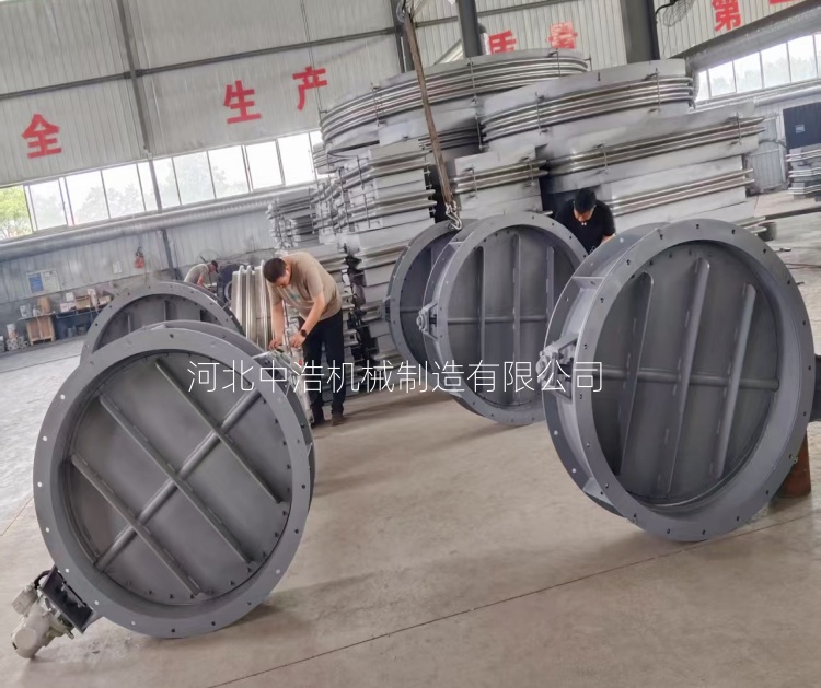 中浩机械对调节风门材料优化采用符合密封材料极端条件采用特殊材料,符合密封材料 采用金属和柔性材料,将金属框架嵌入石墨、陶瓷纤维或高温橡胶等,既可以耐温又不失弹性,阀板表面通过喷涂钨、碳化硅等耐磨防腐涂层,减少磨损提升泄漏率。在特殊工况条件下使用合金钢和陶瓷复合材料,腐蚀性介质选用聚四氟乙烯内衬。结构上提高通过多重密封结构和动态补偿机制,双密封结构采用主密封采用金属硬密封承担高温高压,通过柔性材料增强气密性,,动态密封利用弹簧和气动装置自动补偿热膨胀磨损导致间隙。对密封面优化设计,采用锥面或球面增强紧密型,阀座设计采用精度执行器,便于调节时更贴合。制造与装配上,数控机床切割阀板、阀座,误差控制在0.05mm之内,减少初始泄露,密封面打磨镜面级,降低摩擦阻力,镀硬铬涂层提升耐磨性。其次对工况适应性改进,包括防颗粒卡滞设计以及热变形处理,筏板边缘可增设清洁装置,防止积尘,阀板设计采用密封面密封面硬度差异设计,一般阀板硬度高于阀座,减少颗粒磨损。热变形补偿,筏板采用分体结构,热膨胀自由变形,高温区区域设置散热片或则支架,以降低或隔离局部温度。后期定期维护核管理是关键,每个月对密封面磨损量检测,一般大于0.5mm时要更换,利用激光仪定期校准阀板阀座位置,密封件设置可拆卸,损坏定期更换及时拆除节约时间和成本。例如,河北中浩在某电厂700℃烟气系统采用碳钢陶瓷涂层加上双密封材质,泄漏率从1.5%降到1%,同时延长了使用寿命。