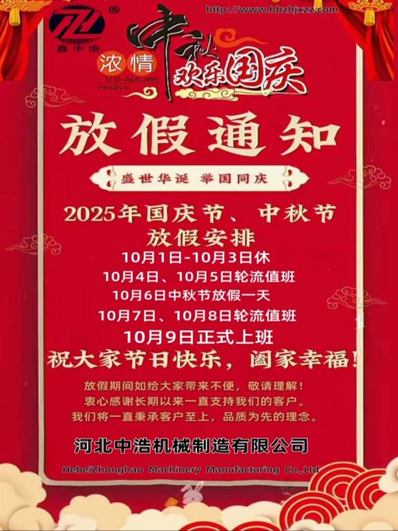 迎中秋,庆国庆,河北中浩机械制造有限公司作为