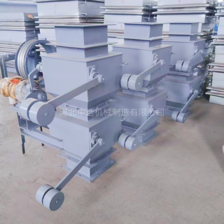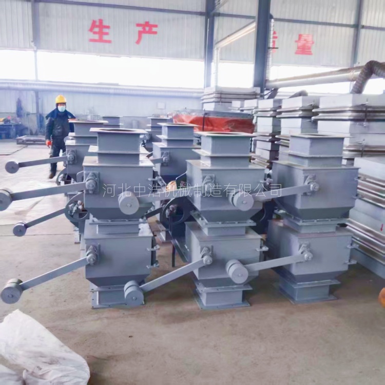 翻板阀工作原理上板阀受物料重力克服重锤力矩,自动开启至中间腔,物料落完,重锤杠杆复位,上阀关闭,上阀受中间物料重力开启卸料。下腔物料物料排空,下阀迅速复位,始终确使至少一层阀板关闭,实现效率锁风,防止气流倒灌,完成卸料。 一般常用在建筑、电力、冶金、化工、矿山等除尘器灰斗、磨机烘干机出料仓,气力输送系统等防止系统负压被破坏。